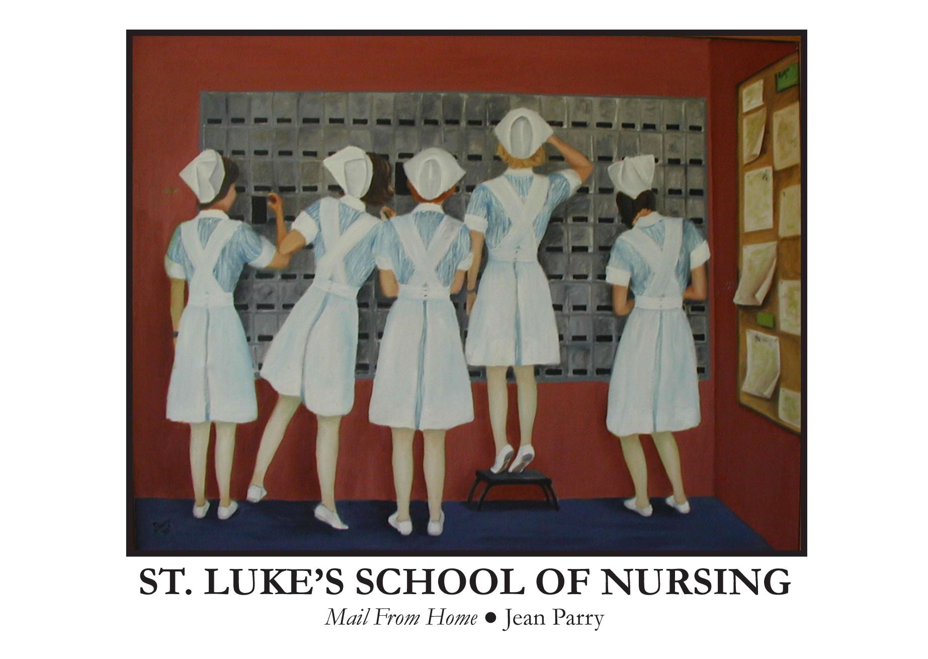 Poster featuring the Mail From Home painting by Jean Parry. In the early 1970s, Parry painted this picture depicting St. Luke’s nursing students as they checked for “Mail From Home”.